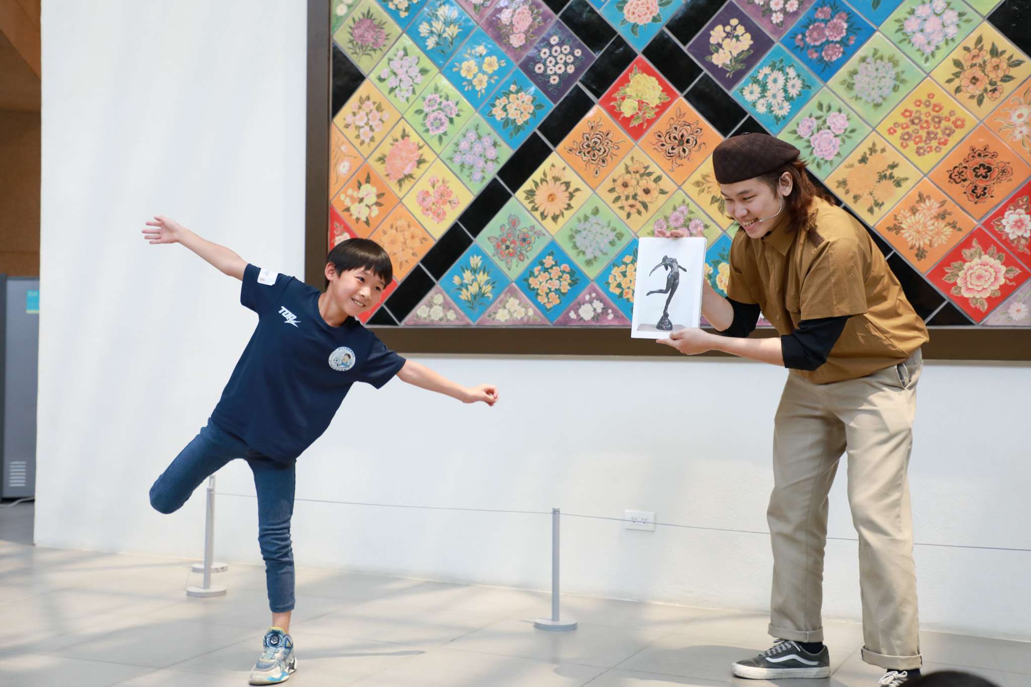 本次工作坊特別邀請 快樂鳥故事劇場 共同合作,透過圖卡、肢體暖身、闖關遊戲與動作展演,引導孩子觀察雕塑的姿態、線條與情感,並將所感受到的「溫度」轉化為身體表現。