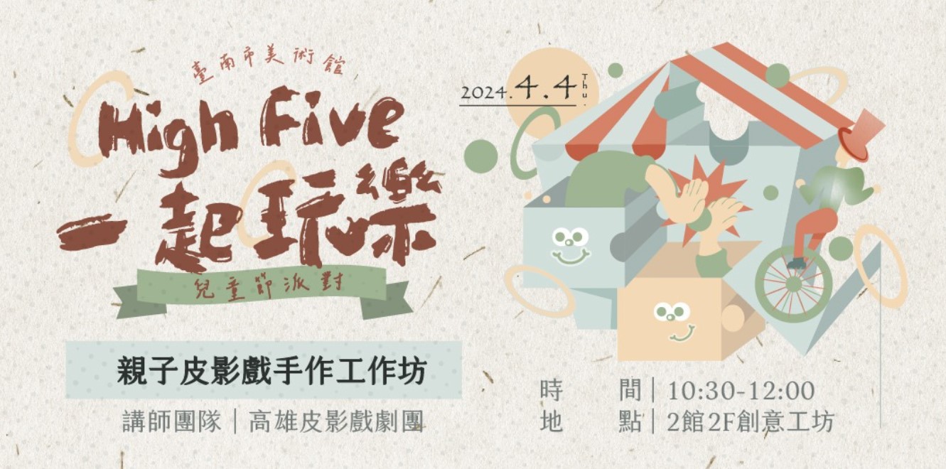本次兒童節活動以年度主題「#冒險旅讀」及「#臺南建城400周年」延伸發展,邀請邀請「 高雄皮影戲劇團 」帶領孩子認識傳統皮影表演藝術,活動將體驗皮影操偶及製作戲偶等,歡迎與我們一起回到臺灣傳統技藝年代~